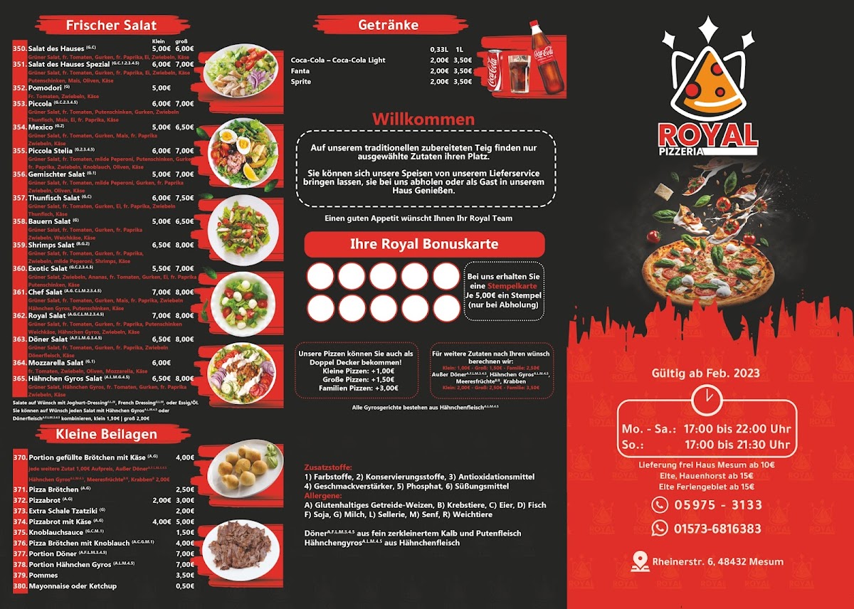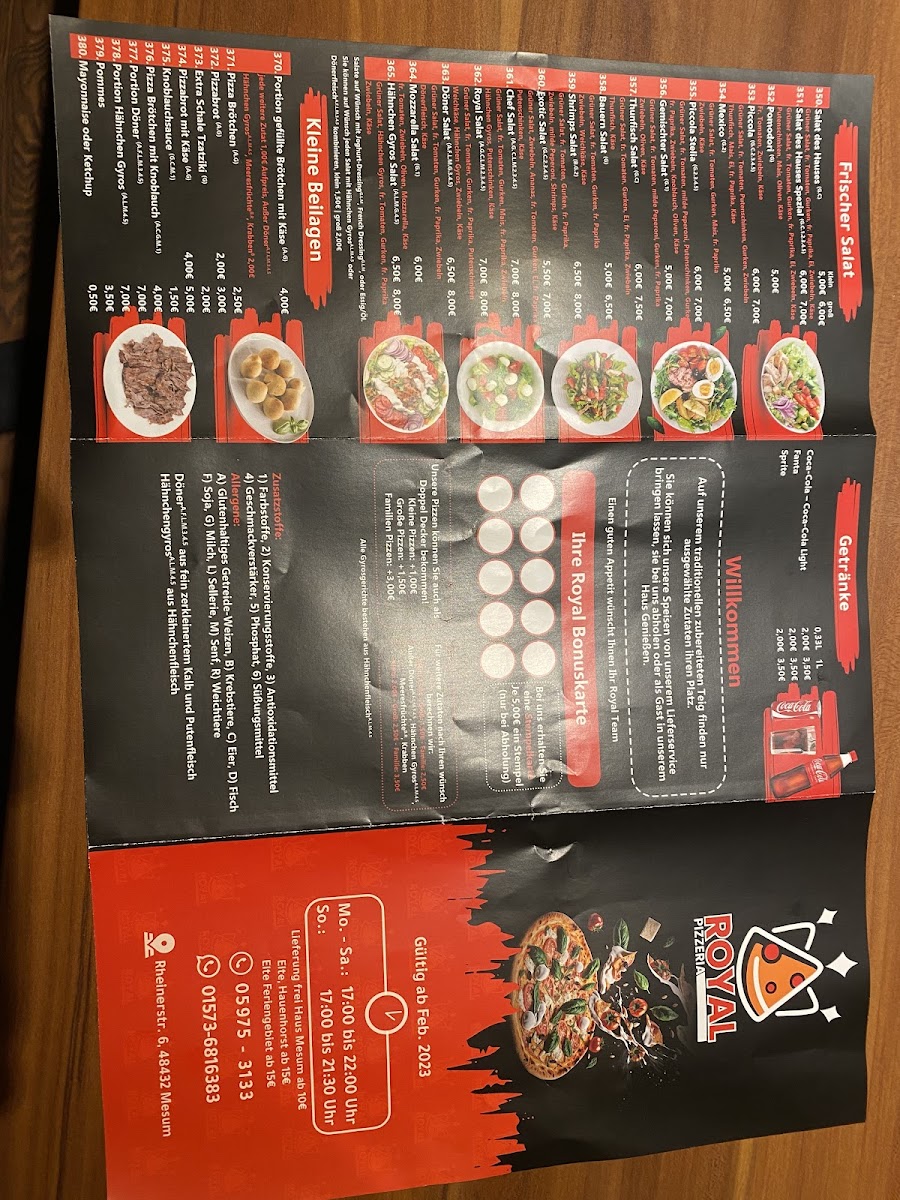 The feedback from customers speaks volumes, highlighting the friendly staff and the restaurant's warm ambiance. Whether you're after a quick bite or a relaxed meal, Pizzeria Royal Mesum stands out as an inviting destination that promises taste and value in every dish.